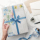 Tecido pesado para a desvinculação, Estilo de Vintage, mas nova arte, "Chinoiserie Rosa Peony Floral Blue White Vases Wrapping Paper". Vaso clássico tradicional de Chinoiserie azul e branco em forma decorativa floral. Peônias e rosas cor-de-rosa esbranquiçados com folhagem verde-amarela-manteiga e salgada foram pintados à mão em cor d'água acrílica na canvas por uma artista e designer internacionalmente licenciada, Audrey Jeanne Roberts, autora.