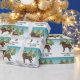 A ilustração original do desenho de Destei de um cão da raça Labrador Retriever, marrom, de chocolate bonito. O cão é colocado numa cena de inverno com três árvores de abeto verde. O fundo é um gradiente azul a branco que dá à design aquele olhar frio do dia de inverno. Há uma área de texto personalizável que agora diz: "Feliz Natal!" junto com um nome personalizado.