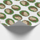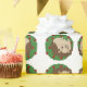 (Ouriço marrom pequeno de A que pica através de uma grinalda verde do Natal com baubles vermelhos.)