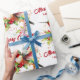 Entra nos teus convidados com este charmoso design de papel de embrulho de férias. Apresenta uma bela aquarela, com o tema natalino, beija-flor cercada por um buquê de flores de inverno sobre fundo branco. O design apresenta tipografia vermelha personalizada.
