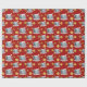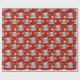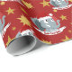 Christmas wrapping paper with an illustration of a cute elephant with red Santa cap; great decoration for Christmas holidays, editable template design with custom field for your own text, with a red background with stars, illustrated by Radka Kavalcova
