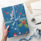 Elegant Christmas flamingos and holly pattern on a dark blue background, perfect for creating beautifully wrapped gifts.