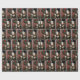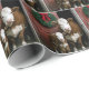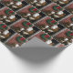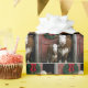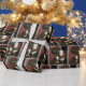 A Hereford cow and her calf stand at the entrance of a red, rustic barn, decorated with a green pine wreath and red bow