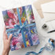 Pintura colorida, branca e artística em acrílico, Papais noeis estão tocando harpa à lua, coruja, ornamentos florais, plantas de inverno, brinquedos para crianças, bagas holly em cores vermelho vivo, verde, branco, azul, amarelo. por Búlgaro Lumini (c)