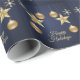 Christmas Party Golden Ornament Navy Blue Elegant Wrapping Paper. Unique, beautiful, stylish design. Easy to be personalized. Font style, size and colors can be changed. Matching items are available.