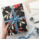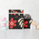 Elegant red and white Christmas foliage design that seamlessly repeats on a sleek black background. Perfect for creating a festive and sophisticated holiday wrapping paper.