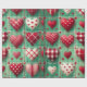 Papel De Presente Christmas Quilted Hearts Green Red White