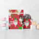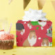 Cães de Collie Cute Rough vestidos em roupas festivas, chapéus de Papai Noel e blusas de argila com Enfeites de natal espalhados.