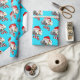 Make your own Santa Dog Christmas roll wrapping paper with your dog's face for a unique gift wrapping pattern. Simply replace the current dog photo with your dog's cut out face photo to view it wearing a Santa hat with a red and white striped scarf. You can easily cut a photo of your dog's face in most popular apps and graphic design software. It's helpful to have several sizes available on a transparent background to upload to ensure a good fit with the Santa hat and scarf drawing. Experiment with different sizes to see what fits best. You can also select your favorite background color instead of the blue shown here. Just click on the background layer to choose any color you like from the color palette. This cute gift wrap with a pet dog's face and Merry Woofmas message on the hat is sure to add a festive touch to any dog lover's gifts or wrap a gift for your dog!