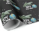 "Joy to the World" text with globe ornament hangs from a snowy pine tree branch, illuminated against a black night sky filled with shimmering stars.