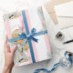 Papel De Presente Christmas Wrapping Pink & White Stripe Angel Baby