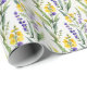 Papel de embrulho com flores silvestres em aquarela roxo e amarelo. Perfeito para chuva de noiva, casamentos, aniversário dela e chás de bebê.