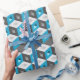 Papel de envolvimento feito sob encomenda com teste padrão retro de cubos isométricos sem emenda no azul e no cinza do aqua da cerceta.