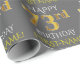 Papel De Presente Cinza, Faux Dourado "FELIZ 73º ANIVERSÁRIO"