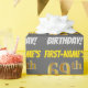 Este design de papel de embrulho apresenta uma mensagem como "PRIMEIRO NOME'S 69º ANIVERSÁRIO!", com o "69º" a ter uma aparência falsa/imitada de cor dourada, e com o nome e "ANIVERSÁRIO" numa fonte divertida e ousada. O nome é personalizável e o fundo é cinza colorida (cinza). Um papel de embrulho como este poderia talvez ser usado para embrulhar presentes de aniversário que são dados a alguém em comemoração do seu sexagésimo nono aniversário. [~Z0000211]
