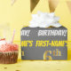 Este design de papel de embrulho apresenta uma mensagem como "PRIMEIRO NOME DO 6 DE ANIVERSÁRIO!", com o "6" a ter uma aparência falsa/imitada de cor dourada, e com o nome e "ANIVERSÁRIO" numa letra divertida e ousada. O nome é personalizável e o fundo é cinza colorida (cinza). Um papel de embrulho como este poderia talvez ser usado para embrulhar presentes de aniversário que são dados a alguém em comemoração do seu sexto aniversário. [~Z0000211]