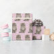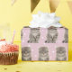 Gatinho de cinza giro com padrão de bolinhas branco e rosa.