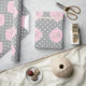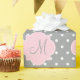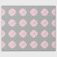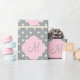 Branco monograma em padrão de bolinhas de cinza com papel de embalagem cor-de-rosa pastel. O design apresenta um padrão de bolinhas branco e cinza e uma forma de quatrefoil rosa pastel com sua inicial personalizada.