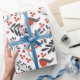 Papel De Presente Cinza Vermelha de Pássaro Vermelho Berry Moderno