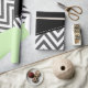 Padrão elegante, na moda e sofisticado de zigue-zague (chevron) em cinzas e cor branca com manchas de cor pretas e menta. Presente moderno e moderno, perfeito para o amante ziguezague na sua vida.