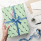 Papel De Presente cinzas ilustradas Dinossauro Verde de Natal