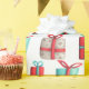 Papel de embrulho bonito e perfeito para qualquer celebração como Natal, graduações, chás de fraldas e aniversários. O padrão é feito com três presentes diferentes em cores cinzas, vermelhas e turquesas. Ilustrada e projetada por Patricia Alvarez.