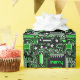Design com um fecho legal de um conselho de circuito de computador a preto, branco e verde, com um toque festivo. Esfregando papel com um design personalizável para você personalizar com seu próprio texto, imagens e ideias. Imagem criada usando uma fotografia original e técnicas digitais.