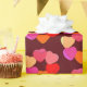 Uma coroa de corações transparentes e muito coloridos, repetidas vezes em fundo vermelho profundo — você não pode dizer "Eu te amo" com muita frequência — certo? O toque certo para o presente de namorados que você comprou.