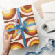 Este é um elegante círculo moderno de meio século em laranja, amarelo mostarda e marrom em quadrados. É papel de embrulho para excelente para qualquer um que ame designs do médio geométrico