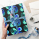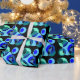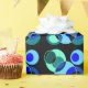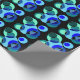 Padrão abstrato, colorido e geométrico, vários tons de círculos de interseção verdes e azuis sobre fundo preto