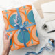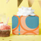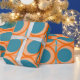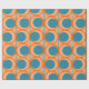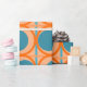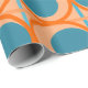 Este papel de embrulho tem uma design moderna do século médio de círculos laranja abertos, com círculos de palha maciça que atravessam o padrão com linhas verticais lacrimogêneas e linhas horizontais laranja.