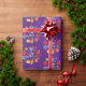 Padrão de excelente para embrulhar presentes de Rosh Hashanah. Shana Tova com símbolos judeus tradicionais em fundo roxo escuro.