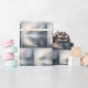 Um cisne gira graciosamente sobre um lago sereno cercado por neblina, com árvores elegantes e aves distantes melhorando a atmosfera tranquila