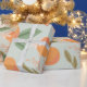 Enrole os presentes em estilo com este papel de embrulho, apresentando um padrão ilustrado colorido de laranjas, flores tropicais e folhas sobre um fundo verde-claro.