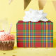 O presente de ocasião é embrulhado no padrão de tartan Clan Chattan, uma xadrez tradicional escocesa em vermelho brilhante, verde, azul e amarelo. Escolha entre três tipos de papel.