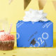 Esse papel de embrulho de graduação oferece um design de graduação 2020 em azul, preto e branco com texto personalizado para o nome do formando. O texto diz: Classe de Formando 2020. Um quadro negro fica no topo do zero no ano. A cor de fundo pode ser alterada.