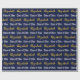 O papel embrulho é azul escuro da meia-noite. Ele tem um padrão de texto para o nome do formando e Classe de 2026. O nome (Mostra: Elizabeth) aparece num guião de ouro elegante (e não em folha). O outro texto é branco. Todo o texto pode ser editado.