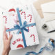 This festive Christmas gift wrap features a cheerful candy cane pattern inspired by traditional holiday sweets