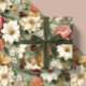 Papel De Presente Classic Christmas Pink and Sage Green Floral Gift