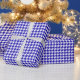 Papel De Presente Classic Dark Blue and White Houndstooth Pattern