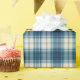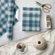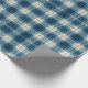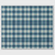 Elegant and traditional wrapping paper featuring a seamless plaid pattern in deep indigo blue and creamy beige. The design uses intersecting lines of varying thickness to create a timeless tartan aesthetic, perfect for holiday gifts, birthdays, or any occasion that calls for a cozy, heritage, or rustic presentation. This paper provides a sophisticated, non-seasonal look suitable for both men's and women's gifts.