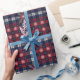 Papel De Presente Classic Navy Red Plaid Snowflakes Christmas
