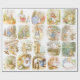 este belo e nostálgico papel de embrulho retrata a imagem de "O Conto de Peter o Rabbit" do livro clássico de Beatrix Potter. As imagens da história de vintage são perfeitas para adicionar um toque especial aos seus presentes ou aos artesanatos.