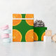 Enrolando papel com um toque de fatia Clementine atraente em um fundo verde.