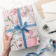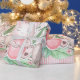 Papel de embrulhamento temático, cor-de-rosa e coelho verde da Páscoa.