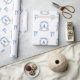 Papel De Presente Coelho Azul Gingham Monograma Crest