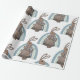 Um belo e adorável coelhinho ilustrado segurando papel de embrulho de bule de chá, com um arco-íris. Bonito azul pastel e castanhos. Perfeito para embrulho de presente de chá de fraldas ou de aniversário de bebê.