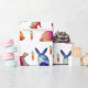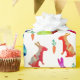Coelhos de aquarela em várias cores, cenouras, humor de Páscoa, fundo personalizado.