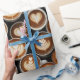 Bold coffee themed print featuring coffee cups with eleganty foamed coffee.