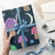 Este é o padrão de cogumelos do espaço fantasma com lua e estrelas sobre fundo azul escuro. É um presente perfeito para qualquer um que ama cogumelos ou designs surreais e espaciais